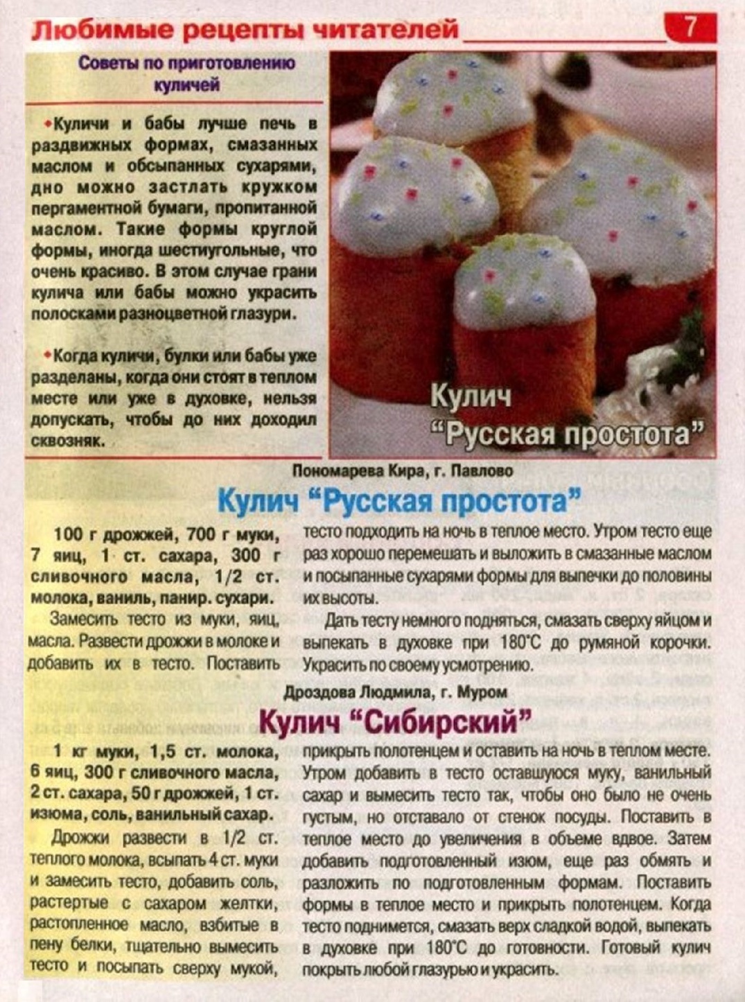 Советы по приготовлению куличей. Кулич "Русская простота". Кулич "Сибирский"