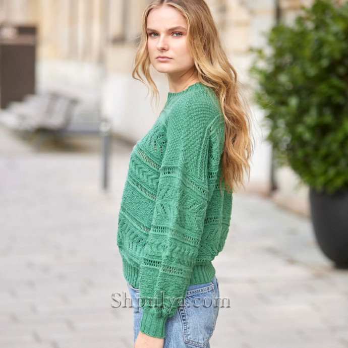 Пуловер с сочетанием узоров связаный поперек — Shpulya.com - схемы с описанием для вязания спицами и крючком