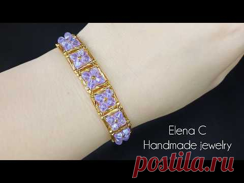 Bracelet Bugle and Crystal Beads Tutorial Beautiful Jewelry Красивый Браслет из стекляруса и бусин