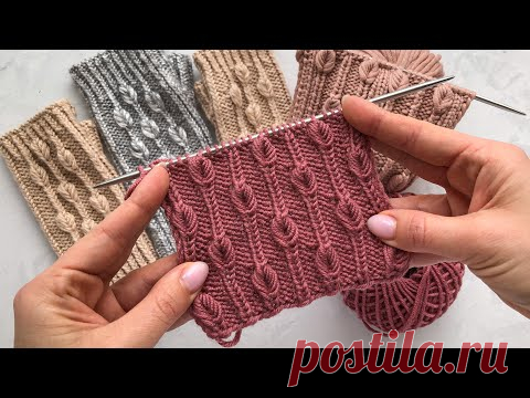 Шикарный узор!! Невероятно красивая резинка с листочками для шапок, жилетов, кардиганов, свитеров.