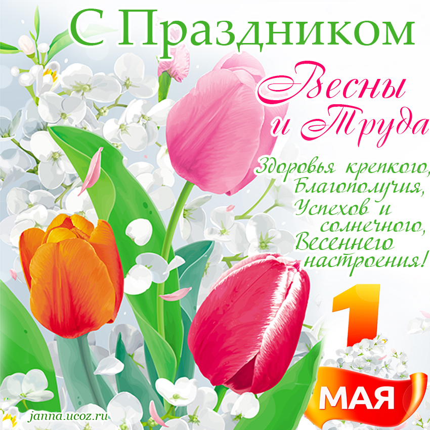 Пусть Первомай зеленый и поющий Раскрасит землю в яркие цвета. Пусть праздник будет радостным, цветущим, Пусть радует весны вас красота!