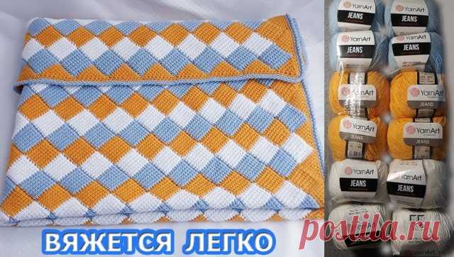 ДЕТСКИЙ ПЛЕД КРЮЧКОМ/ОЧЕНЬ КРАСИВЫЙ с ЗАВОРАЖИВАЮЩИМИ КВАДРАТИКАМИ /УЗОР ДЛЯ ПЛЕДА/ТУНИССКОЕ ВЯЗАНИЕ