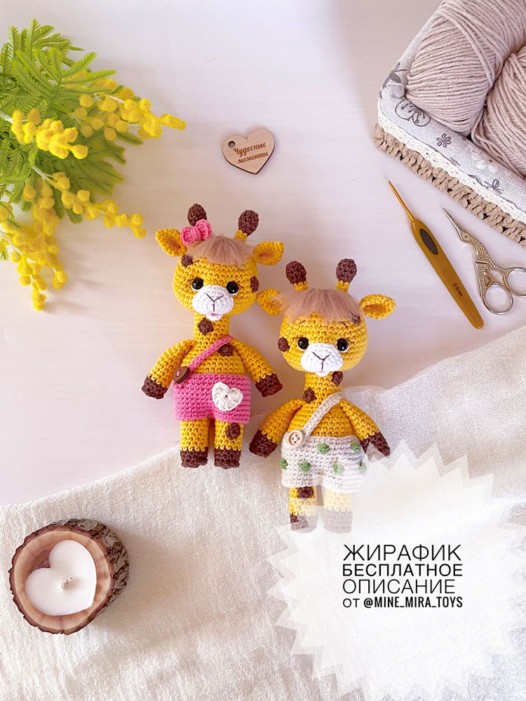 PDF Жирафик крючком. FREE crochet pattern; Аmigurumi toy patterns. Амигуруми схемы и описания на русском. Вязаные игрушки и поделки своими руками #amimore - жираф из обычной пряжи, жирафик в комбинезоне.