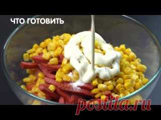 5 БЫСТРЫХ САЛАТОВ с кукурузой за 5 минут! 1) Салат с сухариками и кукурузой Колбаса, помидор, банка кукурузы, сухарики, соль и майонез. 2) Рецепт салата с грудками и кукурузой Куриные грудки 400г, сыр 100г, кукуруза, 3 яйца, 1-2 маринованных огурца, зелень, майонез. 3) Салат с огурцом и кукурузой Колбаса, 100г сыра, пара огурцов, банка кукуруза,..