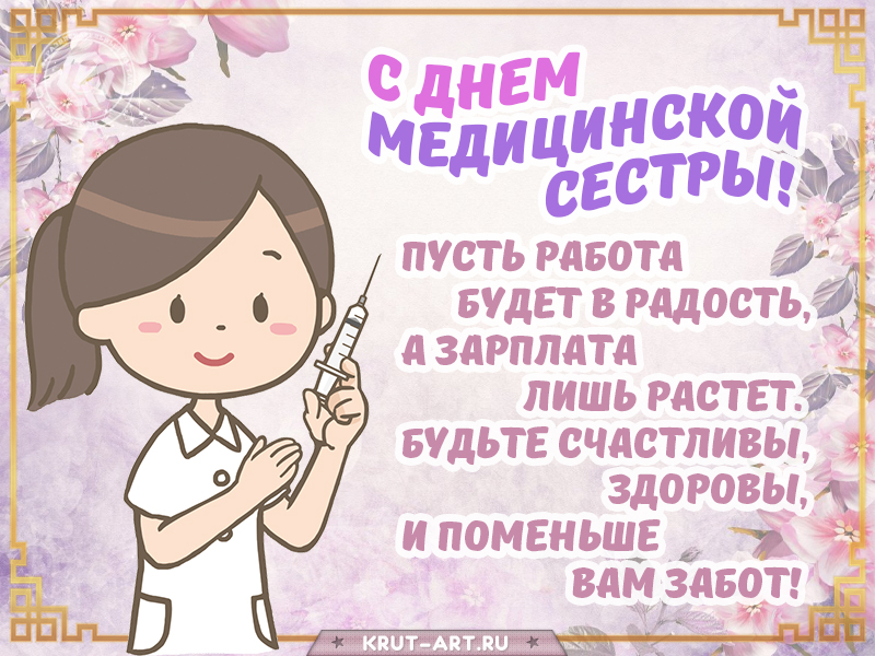 Ты — медицинская сестра, С прекрасной доброю душой, Желаю света и тепла, И чтоб любовь была с тобой.