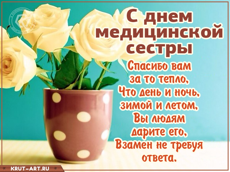 С Днем медсестры душевно поздравляю, Пусть каждая минута дарит Вам тепло, В работе трудностей не знать желаю, И будет в доме Вашем пусть светло.