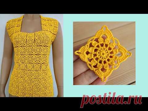 ВЯЗАНИЕ БЛУЗКИ из квадратных мотивов ПРОСТОЕ вязание крючком для начинающих СХЕМА квадрата CROCHET