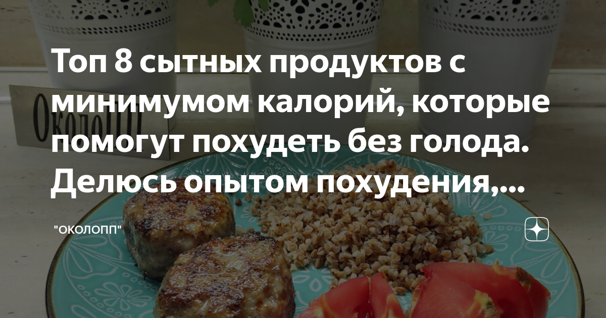 Топ 8 сытных продуктов с минимумом калорий, которые помогут похудеть без голода. Делюсь опытом похудения, меню. Мой результат минус 63 кг Статья автора «"ОколоПП"» в Дзене ✍: Привет! Надоели голодные диет и невкусная еда, постоянные срывы и набор веса после диет? Значит пора разумно подойти к проблеме лишнего веса и способу ее решения.