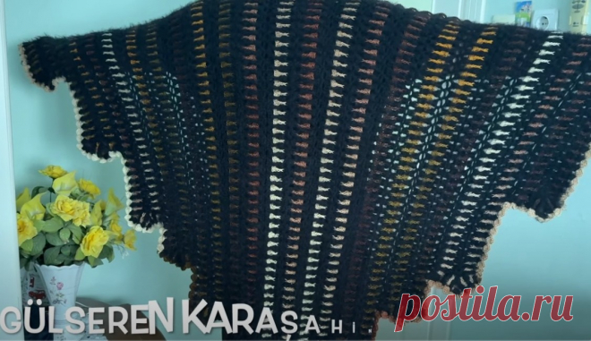 Tığ işi Şerit Motiflerden Üçgen Şal Yapımı