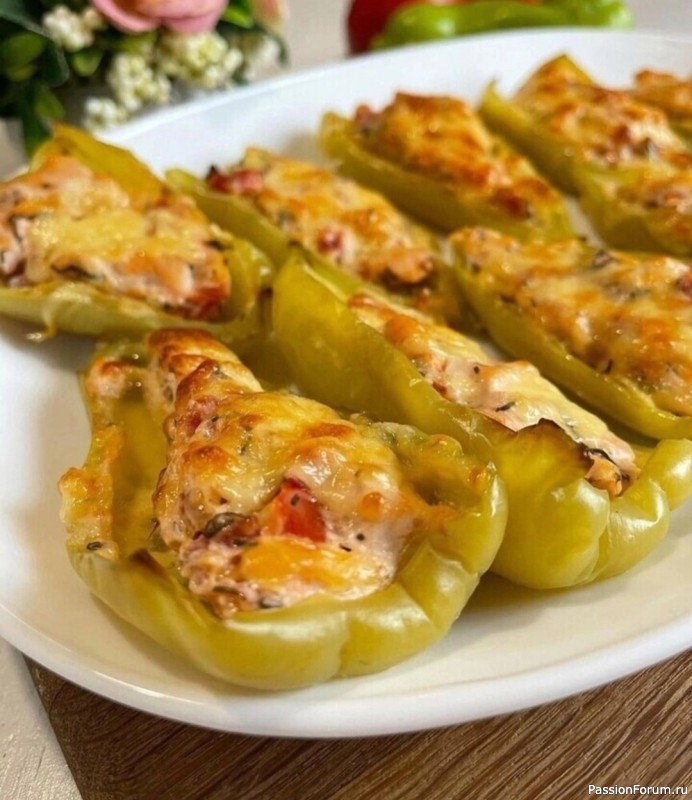 Фаршированные запеченные перцы Ингредиенты:- 5 перцев- 400 г филе курицы/индейки- 50 г сыра- 2 шт помидор- 2 ст л сметаны- зелень, соль по вкусу📝Как готовить:Филе нарезать кусочками, добавить порезанные небольшими кусочками помидоры, натертый сыр, сметану, зелень и соль, перемешать.Перцы разрезать пополам, очистить от...