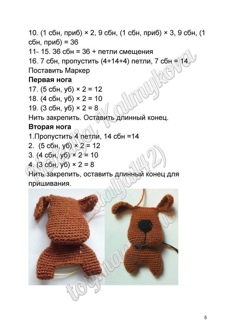 Амигуруми собака с аксессуарами: ошейник и бантик