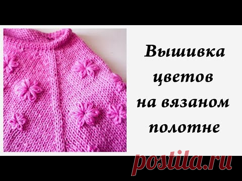 Вышивка цветов на вязаном полотне \ декор лицевой глади \ Ульяна Che