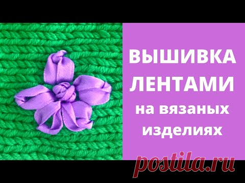 Вышивка на вязаном изделии ЦВЕТЫ атласными лентами. Классная идея декора