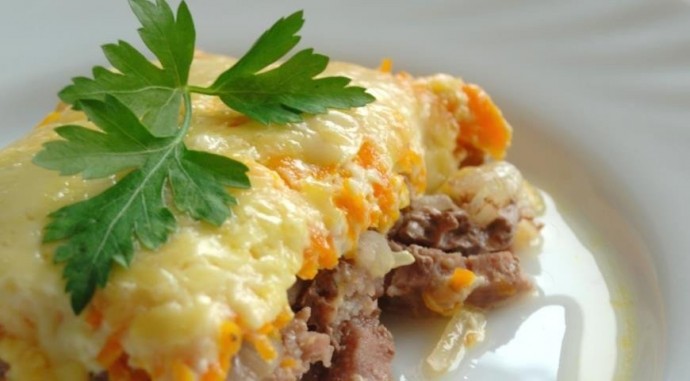 Говядина с овощами под сыром Ингредиенты:Охлажденное азу, или гуляш из говядины, или целый кусок говядины духовой (тазобедренная часть) — 1-1,1 кгМорковь крупная — 2 шт. (400 г) Лук репчатый — 4 шт. (400-450 г) Сыр полутвердый (например, "Тильзитер" или "Гауда" 48%) — 150-160...