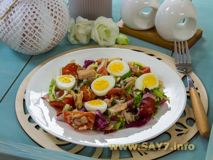 Салат с тунцом, помидорами и яйцами Подробнее
