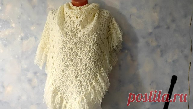 АЖУРНАЯ ШАЛЬ ОЧЕНЬ КРАСИВЫМ УЗОРОМ, крючком. Шаль для начинающих. Шаль связана из пряжи ,,ALIZE ANGORA GOLD simli,, в 100гр.-500м., крючок 4мм., расход пряжи 190гр., размер 1м.80см.*1м.30см.*1м., по верхней линии 29раппортов.