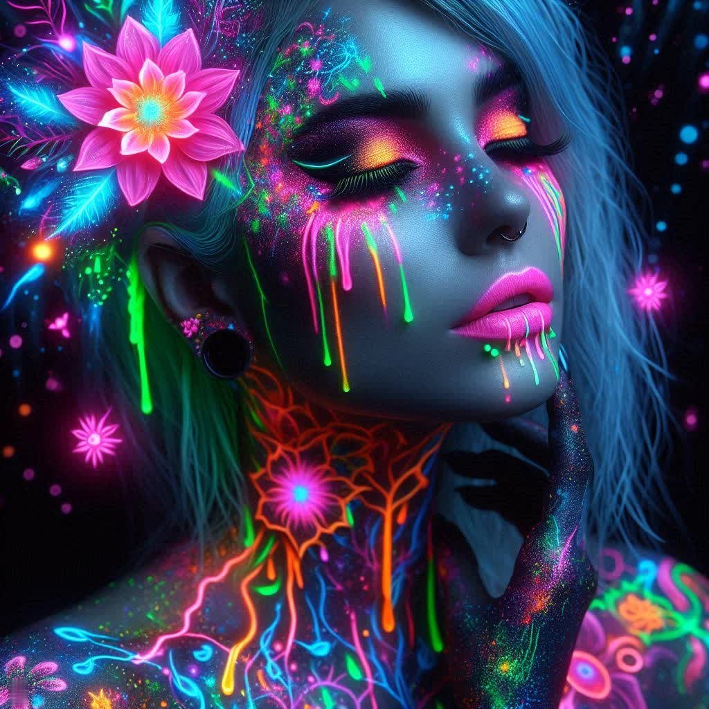 Неоновый портрет: яркая девушка в сюрреалистичном мире света и цвета. Нейронная сеть Dalle - Dalle примеры промтов - Форум ИИ о нейросетях - Yes Ai