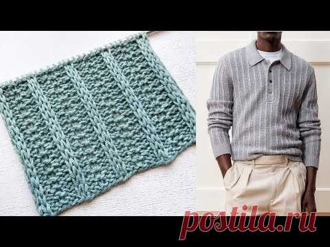 Лаконичный рельефный узор с вертикалями для вязания женских, мужских и детских изделий