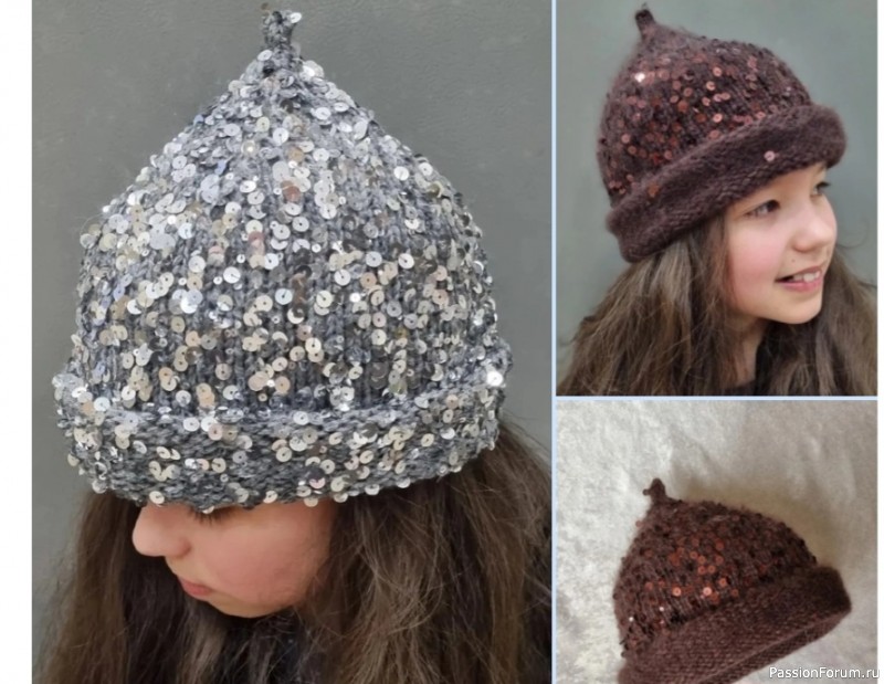 Шапка с пайетками. Описание | Вязание спицами аксессуаров Краткое описание #шапка_гвидонка от knitted_queens ❤️Размер 56-57. Плотность 18п/24р в 10см. Пряжа пух норки (350м/50г) в 2 сложения (без допнити)+королевские пайетки на хлопке (150м/50г) в 2 нити. Спицы 4,5.На круговые спицы набираем 70п+1п для соединения. После соединения вяжем высоту...