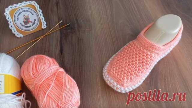 Тапочки Персик спицами.краткое описание.раз.37 38