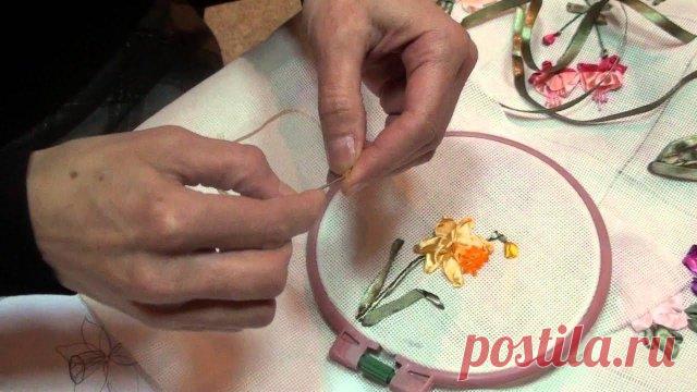 Вышивка лентами. МК от Людмилы Махнёвой. Нарцис бутон