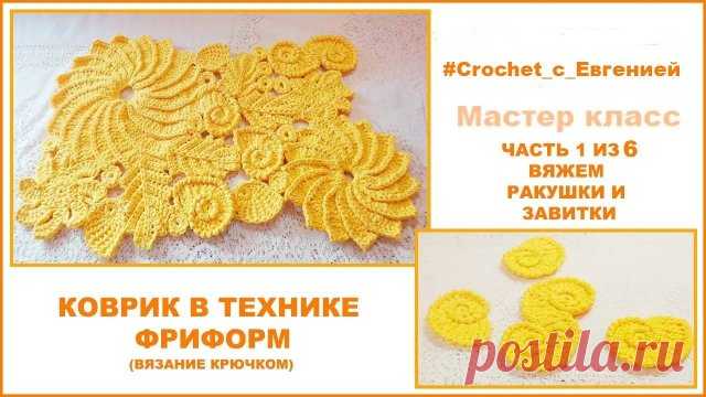 Коврик в технике фриформ. Часть 1 из 6 Вяжем ракушки и завитки. (вязание крючком) Предлагаю связать красивый коврик для ванной или как прикроватный коврик, в технике фриформ крючком. В первой части МК свяжем ракушки и завитки. Для вязания нам понадобится 300 гр. (3 мотка) хлопковой нитки 95м на 100гр. Крючок 4.5 мм. Связь со мной Вк Ок Мой хештег #Crochet_с_Евгенией Читайте в Янд