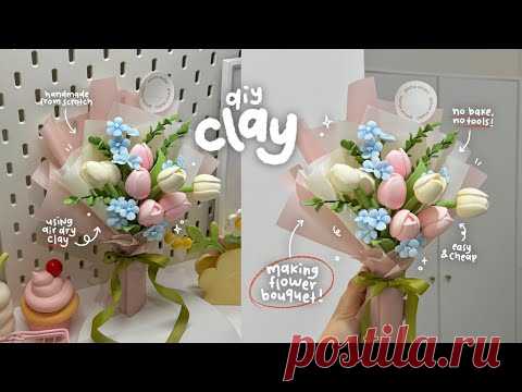 how i make clay flower bouquet💐🌸🌷 using kids air dry clay / no bake, easy and cheap💵📦