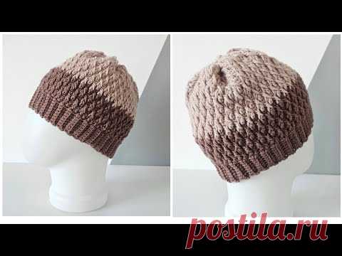 Шапка крючком узор Кожа дракона по кругу / Crochet hat