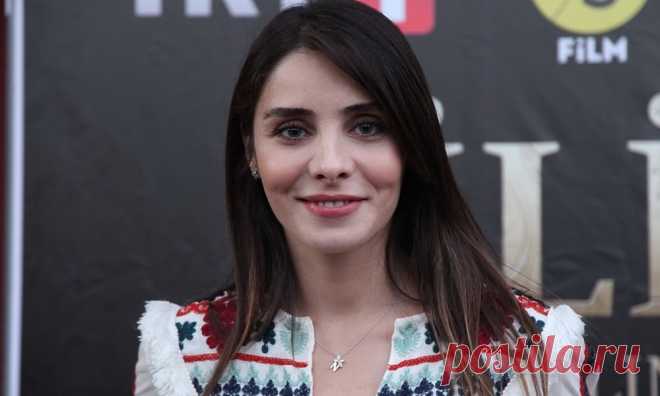 На изображении представлена женщина с темными волосами, аккуратно уложенными на плечи. Она одета в наряд с национальными элементами: белая блузка с цветочным орнаментом красного и синего цвета. Декоративные узоры придают её образу этнический колорит. Женщина улыбается, демонстрируя спокойствие и уверенность. На шее у неё висит тонкая цепочка с подвеской в виде звезды. Фон изображения затемненный, возможно, это задняя стена одного из мероприятий или пресс-конференции. По краям изображения видны логотипы и знаки кинофильмового контекста, что указывает на участие в публичном событии, связанном с киноиндустрией. Верхняя часть изображения содержит текст и символику, которые включают буквы и логотипы, среди которых выделяется слово "Нур Феттахоглу". Освещение направлено спереди, что делает выражение лица чётким и центральным для композиции.