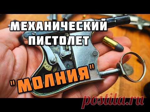 На изображении представлен пистолет необычной конструкции, называемый Tribuzio Lampo. Пистолет выполнен из металлического материала с гладкой поверхностью, имеющей стальной оттенок. В центре изображения видна рука, держащая пистолет, что создает ощущение личного контроля и интеракции со зрителем. Сам пистолет украшен сложной механической деталировкой, с видимыми винтами и рычагами. На заднем плане размыт объект, предположительно патроны, что намекает на функциональное назначение устройства. Фон выполнен в теплых оттенках, вероятно, с использованием деревянной поверхности, что добавляет теплоты и контраста к металлическому пистолету. Текст на изображении привлекает внимание к названию и особенностям изделия, подчёркивая его уникальность и механическую сложность. Композиция сосредоточена на пистолете, усиливая его необычность и редкость. Освещение направленно на объект, акцентируя его детали и подчёркивая текстуру металла. В верхней части изображения выделяется текст на русском языке: "Механический пистолет", а слово "Молния" размещено в центре, с эффектом графического выделения. Это дополнительно усиливает динамичность изображения и ассоциации с именем Tribuzio Lampo.