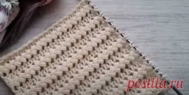 На изображении представлена деталь вязания спицами с использованием узора «Колосок». В центре внимания небольшой фрагмент ткани, выполненной из светлой пряжи, предположительно кремового оттенка. Узор состоит из переплетённых петель, создающих видимость колосков или снопов. Текстура мягкая и равномерная, показывающая мастерство исполнения. На переднем плане видны металлические спицы, чуть выступающие из ткани. На заднем плане с левой стороны можно заметить край цветочной ткани, которая создает тематическую контекстуальность и добавляет визуальный интерес. Свет падает равномерно, подчёркивая текстуру и глубину узора. Композиция фотографии тщательно продумана, чтобы акцентировать внимание на детализированном вязании. Атмосфера снимка уютная и стимулирует желание заняться рукоделием. Надпись на русском языке связана с дизайном узора, подчёркивая его индивидуальность и популярность среди мастеров вязания.",