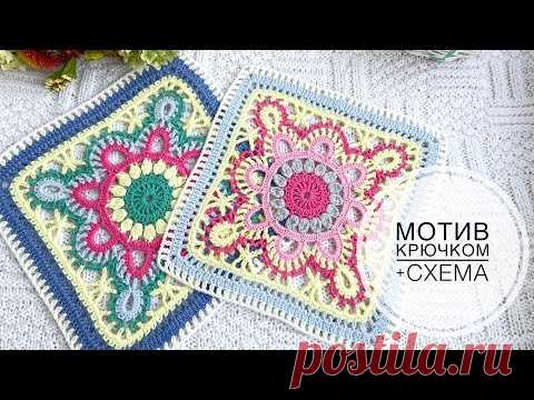 🔥Шикарный квадратный мотив крючком для пледа подушек покрывала🔥 +Схема узора.
