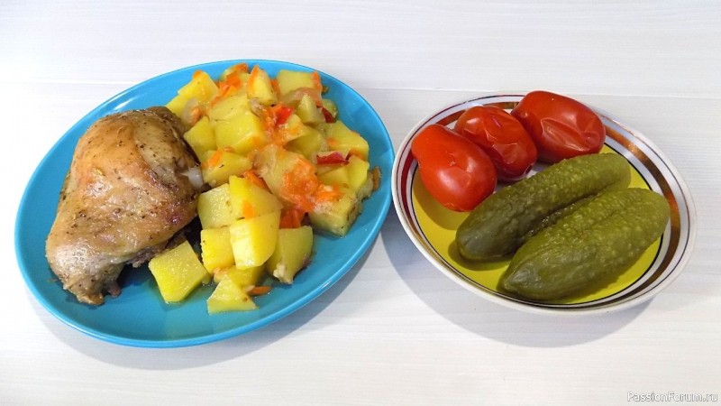 Картошка с куриными бедрами приготовленная в духовке