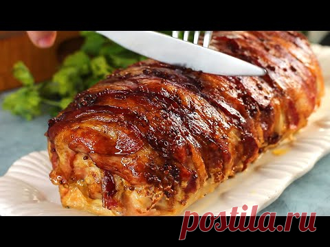 Удивите своих гостей на рождественском ужине! Сочная фаршированная свиная вырезка в беконе.