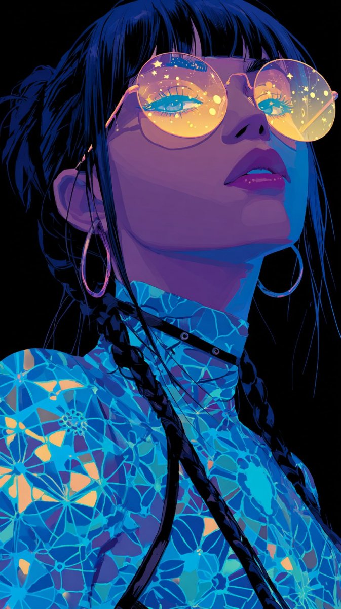 Неоновый блеск: геометрия и яркий макияж в стиле китч. Изображение из нейронной сети Миджорни - Midjourney примеры промтов - Форум ИИ о нейросетях - Yes Ai