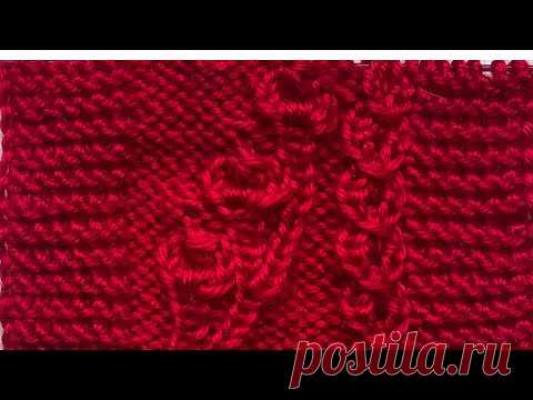 Изображение представляет собой крупный план вязания узором, выполненным красными нитками. В центре композиции находится частично видимая веточка цветов, выполненная в технике вязания спицами. Яркий красный цвет доминирует в изображении, создавая насыщенный и теплый визуальный эффект. Материал выглядит мягким и пушистым, с отчетливо видимой текстурой переплетения, создающей эффект объема и глубины. Узоры расположены симметрично и аккуратно, демонстрируя мастерство и точность выполнения. Освещение равномерное, позволяющее увидеть детали рельефа и разных оттенков красного. Изображение фокусируется на текстуре и форме вязаного произведения, практически заполняя весь кадр без отвлекающих элементов на заднем плане. Девиз "Вяжем спицами веточку цветов" отсылает к тематике рукоделия, создавая атмосферу уюта и творчества.