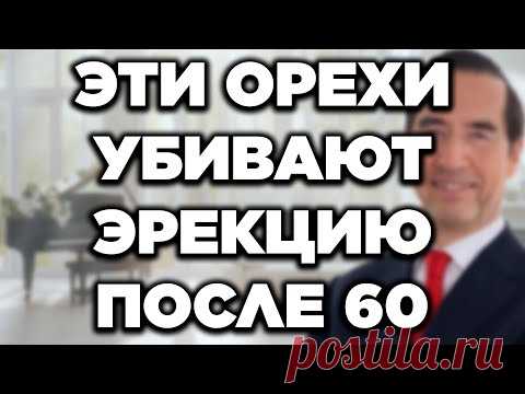 Изображение содержит портрет мужчины в официальном костюме, с галстуком красного цвета, полуобнимающего фон в виде светлого интерьера. Его выражение лица дружественное и уверенное, хотя из-за нечеткости трудно разобрать все черты. На переднем плане надпись крупными белыми буквами на черном фоне: "ЭТИ ОРЕХИ УБИВАЮТ ЭРЕКЦИЮ ПОСЛЕ 60". Вероятно, фотография сделана в профессиональной студии или презентационной среде, что говорит о деловом характере снимка. Освещение мягкое и естественное, создавая ощущение уюта. На заднем плане виднеется рояль или пианино, что может говорить о классическом стиле интерьера. Фон размытый, что добавляет глубину и акцентирует внимание на тексте. Эта композиция вызывает интерес к здоровью и питанию пожилых людей благодаря включению темы орехов, которые рекомендованы и не рекомендуются для употребления, создавая контраст между выбором продуктов. Это информационное изображение привлекает внимание благодаря ярким цветам и четкой типографике.