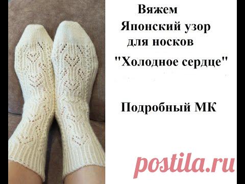 Вяжем японский узор для носков "Холодное сердце". Попетельный МК.