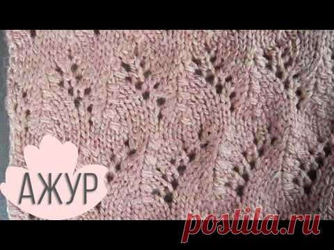 Изображение представляет собой фрагмент ажурного вязанного полотна. Узоры выполнены в светло-розовом цвете, который придаёт изделию мягкость и изящность. Материал нежен на вид и кажется тёплым, что особенно актуально для вязанных вещей. Текстура полотна демонстрирует сложное переплетение петель, образующих продольные линии и ажурные формы, напоминающие стилизованные листочки или цветочные элементы. Освещение мягкое, без резких теней, что позволяет сосредоточиться на деталях узора и их утончённой архитектуре. В левом нижнем углу изображена надпись "АЖУР", что может указывать на стилистическую ориентацию полотна. Композиция изображения проста, но одновременно богата на детали, которые раскрывают искусство вязания и подчеркивают фактуру материала.