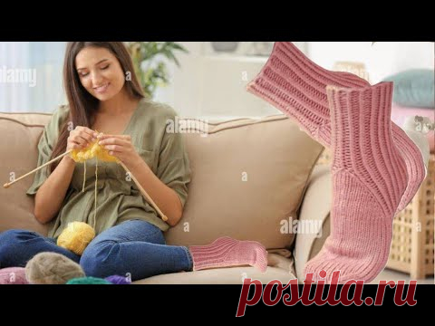На изображении представлена женщина, сидящая на мягком бежевом диване в уютной гостиной. Она занята вязанием и держит в руках пряжу ярко-желтого цвета и спицы. На ней надеты розовые вязаные носки с выраженной текстурой и ребристым узором, которые подчеркнуты красочным акцентом. Одежда женщины состоит из свободной блузы пастельного оттенка и синих джинсов, создающих расслабленную и комфортную атмосферу. Ее лицо выражает сосредоточенность и наслаждение процессом, она слегка улыбается. Женщина сидит в удобной позе, скрестив ноги и расположившись в центре мягкой мебели. На фоне можно видеть размытую детальную обстановку с элементами декора, придающими помещению уют и теплый облик. В правой части изображения показаны увеличенные розовые вязаные носки, подчеркивая их красивую и удобную пятку. Освещение мягкое и рассеянное, создающее уютное настроение, соответствующее светлому дню. Общее впечатление от изображения - спокойствие и гармония домашнего уюта.