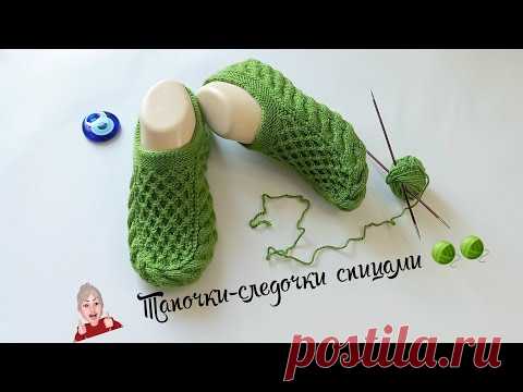 Тапочки-следочки с косой 🧶на 2х спицах.👌вязать легко