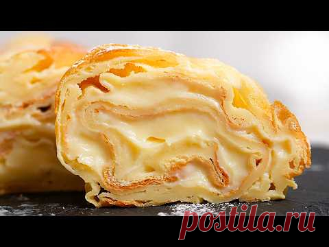 Тесто просто выливаю в противень! САМЫЙ простой и ВКУСНЫЙ рулет с заварным кремом!