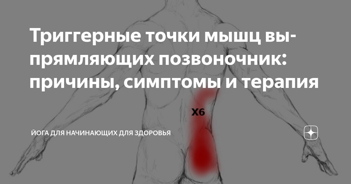 Триггерные точки мышц выпрямляющих позвоночник: причины, симптомы и терапия Статья автора «Йога для начинающих для здоровья» в Дзене ✍: Мышца выпрямляющая позвоночник Триггерные точки мышц выпрямляющих позвоночник: причины, симптомы и лечение Если у вас болит спина, это...