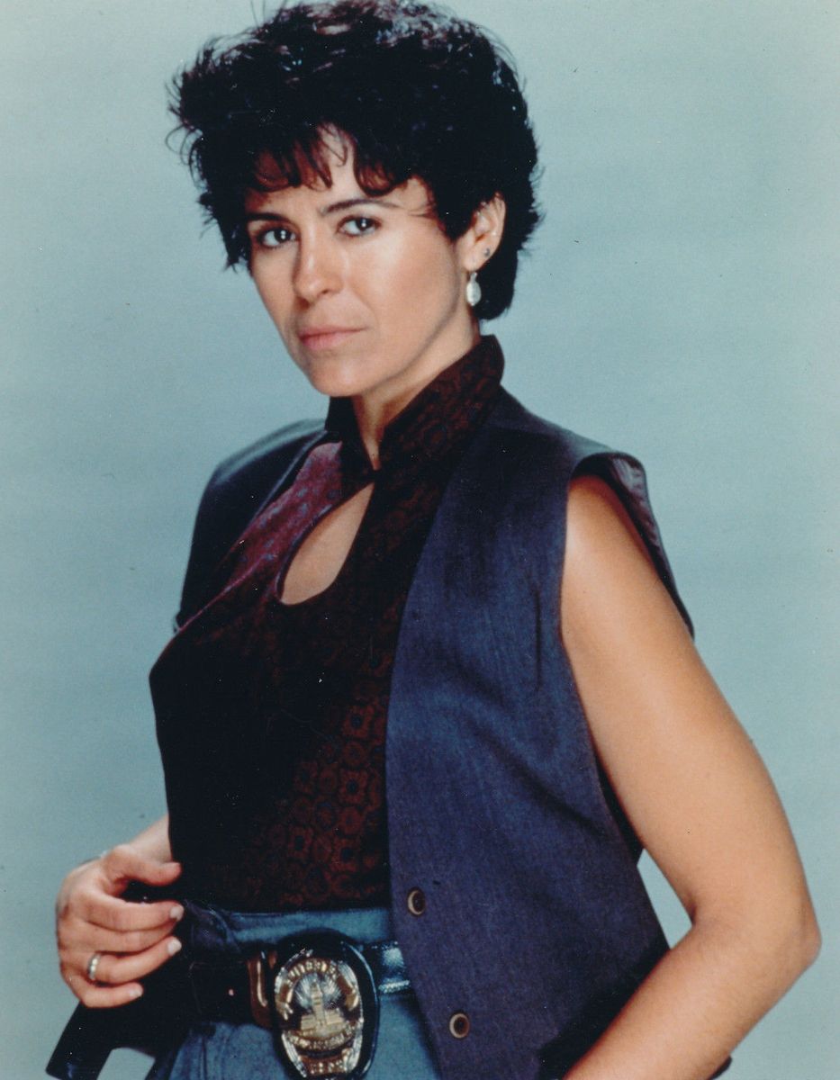 На изображении представлена женщина с короткой темной прической, придающей ей уверенный и решительный вид. Она одета в темно-синюю жилетку поверх блузки с геометрическим узором. В комплект к ее образу добавляется массивный ремень с крупной металлической пряжкой, что создает атмосферу стильного 80-х. Женщина смотрит прямо в камеру с легкой улыбкой и уверенностью на лице. Ее серьги и макияж подчеркивают элегантный стиль. Фон изображения светлый, что позволяет сосредоточить внимание на героине. Освещение мягкое и равномерное, выделяющее каждую деталь ее одежды и аксессуаров. Впечатление от фотографии — комбинация силы и женственности. Возле фото указано “Мария Кончита Алонсо, 29 июня, 1957”, что добавляет контекст и создает впечатление об особом значении или посвящении.