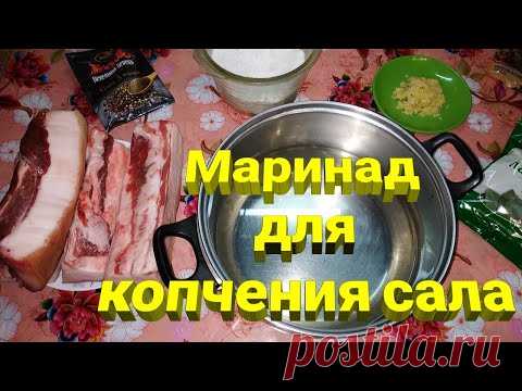 На изображении представлен процесс подготовки маринада для копчения сала. В центре находится большая металлическая кастрюля с черными пластиковыми ручками, которая выделяется на фоне яркой скатерти с цветочным узором в розовых и красных тонах. Справа от кастрюли видна зеленая тарелка с натертым чесноком, добавляющим текстурный контраст. Слева располагается сырой бекон с заметным слоем жира и упаковка черного перца, чьи темные цвета создают выразительный контраст. Особое внимание привлекает белая чаша с солью, добавляющая яркости композиции. Надпись "Маринад для копчения сала" ярко выделяется желтым цветом, расположена по диагонали в центре изображения, привнося динамизм и акцентируя внимание на основном действии. Свет равномерный, создающий теплую и домашнюю атмосферу, а общая композиция сбалансирована благодаря четкому расположению объектов на разных расстояниях. Изображение может ассоциироваться с процессами приготовления пищи, кулинарными традициями, домашним уютом и национальной кухней.