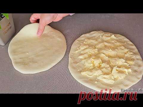На изображении показан процесс приготовления слоеного теста на кухонном столе. Справа видна круглая лепешка теста с распределенным сверху маслянистым наполнителем, в то время как слева другая лепешка, которую держит рука в светлой одежде. Тесто имеет светло-бежевый оттенок, а начинка выглядит кремообразной и слегка желтоватой. В верхнем левом углу кусочек упаковки с зелеными элементами. Освещение яркое, что подчеркивает текстуру теста и начинки. Фон — серая рабочая поверхность, придающая изображению уют и концентрацию на процедуре. Атмосфера фото спокойная и предполагает домашнее приготовление пищи, где простота и скорость являются ключевыми элементами. Слоеное тесто описывается как метод, проверенный временем — уже в течение 20 лет. Этот способ характеризуется как простой, быстрый и вкусный, оправдающий свое название.