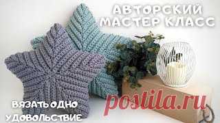 ПОДУШКА ЗВЕЗДА крючком. Безотрывное вязание..mp4 Использовала тпряжу , цвет мята меланж(расход 2 мотка), крючок №6, иглу с тупым концом для сшивания двух сторон. Ваша скидка на материалы по промокоду s28505