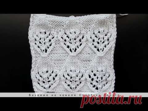 Узор 222. Вязание спицами. Ажурный узор Листики. Образец и схема узора. Knitting.