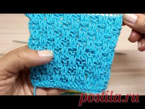 УЗОР ШАХМАТКА ИЗ ВЫТЯНУТЫХ ПЕТЕЛЬ. Вязание спицами.