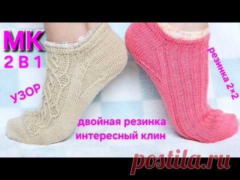 МК 2 В 1 / УКОРОЧЕННЫЕ НОСКИ с ДВОЙНОЙ РЕЗИНКОЙ и КЛИНОМ - ТРЕУГОЛЬНИК / #tutorial #knitting #socks